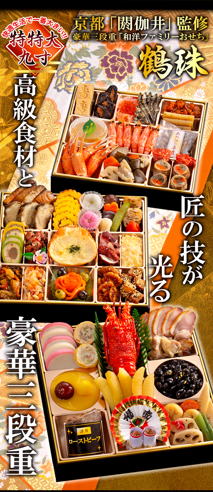 京都「閼伽井」監修・豪華三段重 「和洋ファミリーおせち」鶴珠