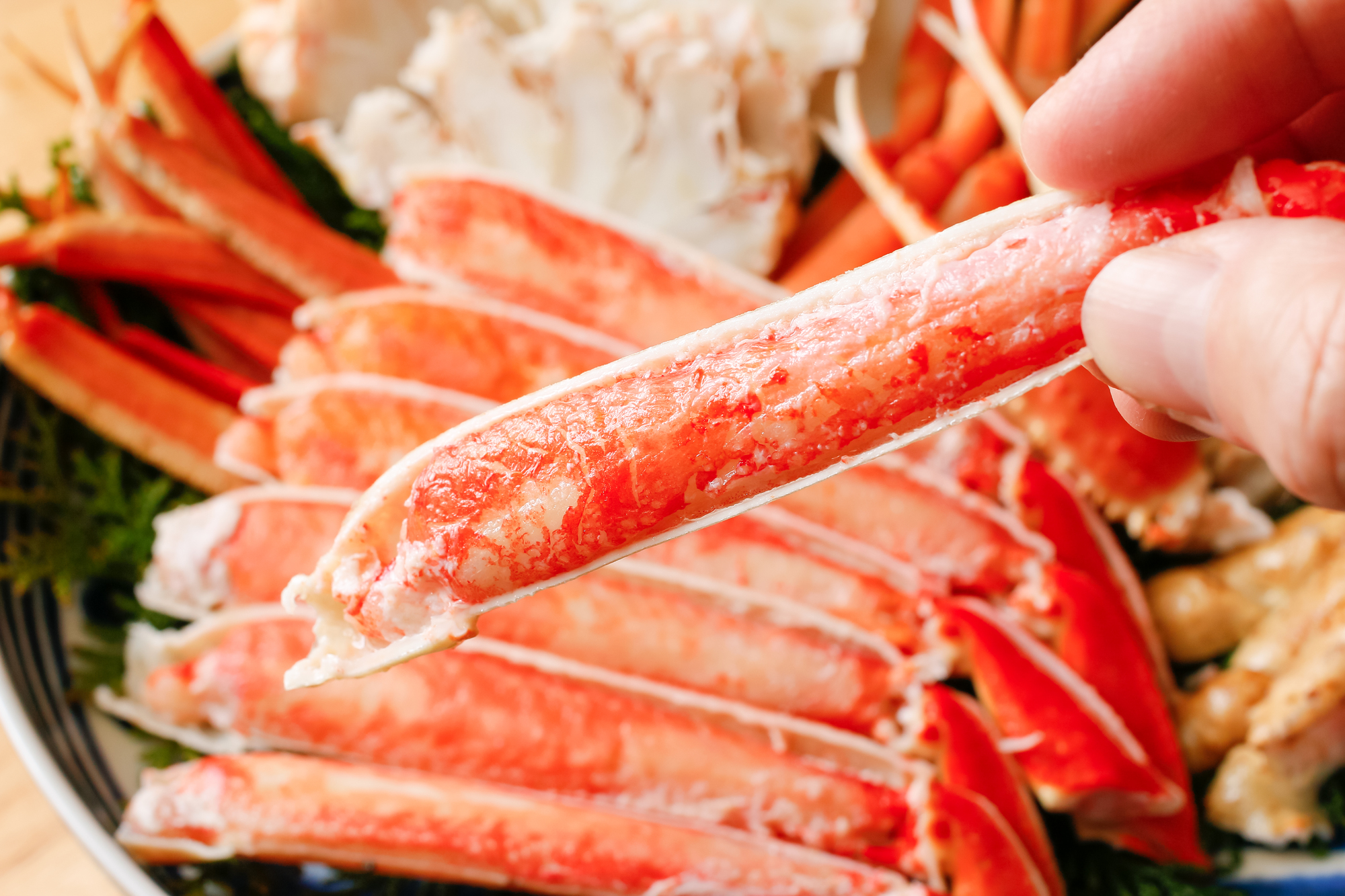 身がぎっしりと詰まっており、殻を剥くとプリッとした太い脚肉が抜けるのが特徴です。一本一本の脚が太いため、頬張ったときの満足感は格別です。噛むたびに濃厚な甘みが広がり、口の中でふんわりほどけるような食感が楽しめます。