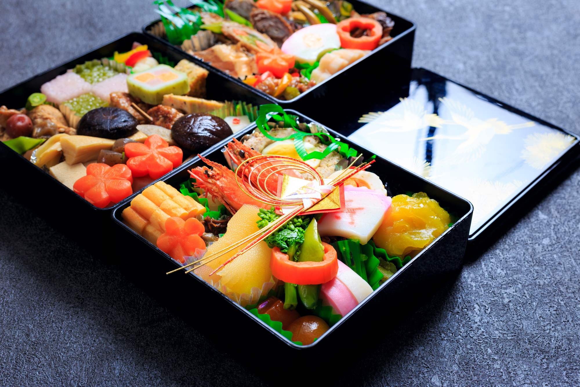 おせち料理の重箱には、「めでたさを重ねる」という縁起の良い意味が込められています。
