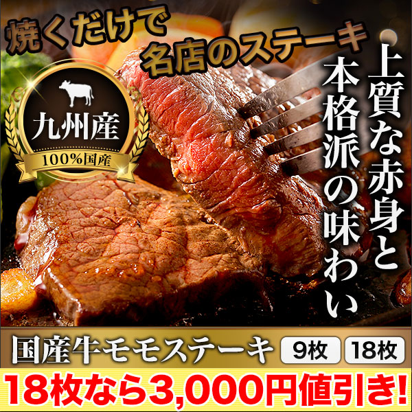 【セール限定価格】おいしい「国産牛モモステーキ」9枚(約900g)/18枚(約1.8kg)