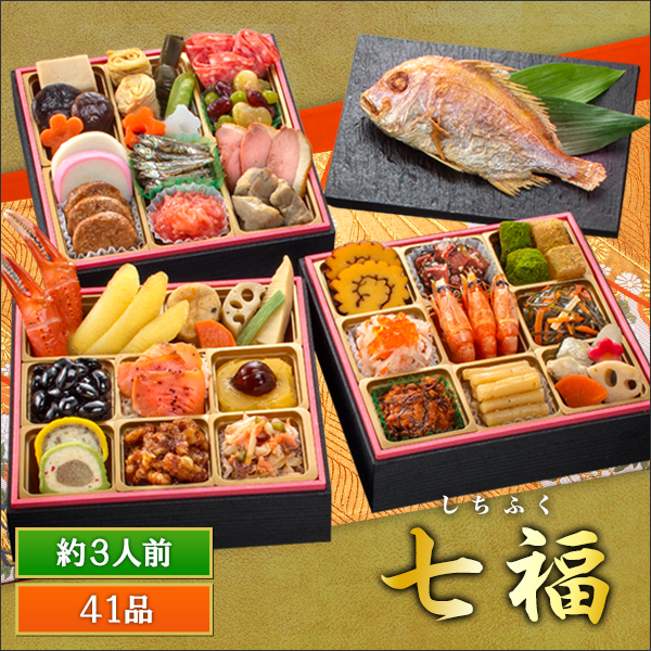 約3人前、41品目と、ご家族みんなで美味しくお召し上がりいただけます。