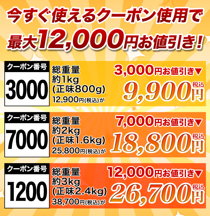 商品番号 | 【総重量:約1kg】12583 【総重量:約2kg】12584 【総重量:約3kg】12585 |
