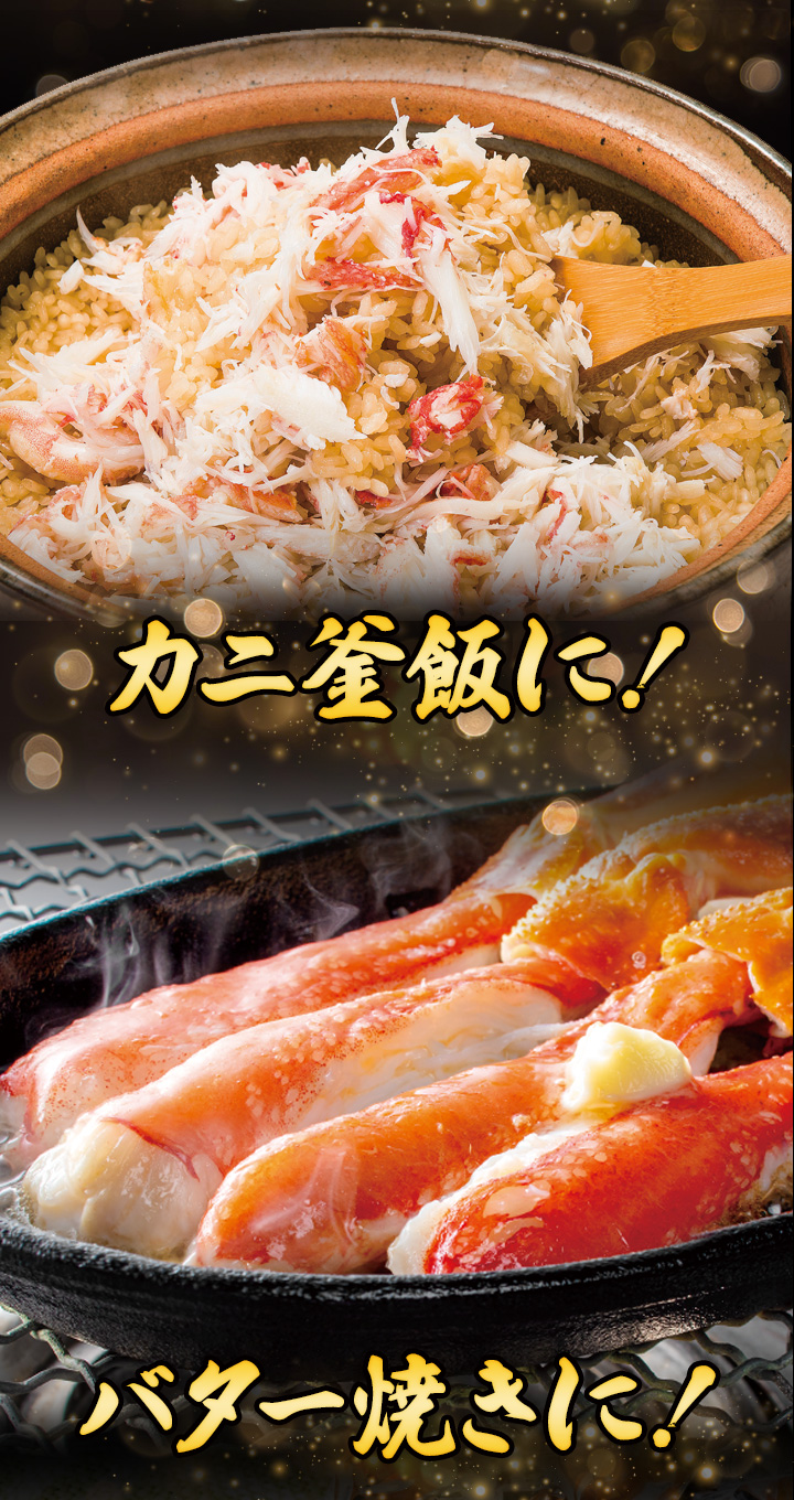 備考 | 総重量とは、グレーズ(氷)を含む重量です。 グレーズとは、空気に触れることによる乾燥や酸化を防ぐための氷の被膜です。 ( )内の正味とは、グレーズを除いたカニのみの重量です。 商品のラベルにはカニ正味の重量を記載しています。 |