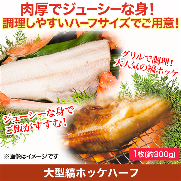 商品説明 | 肉厚でほっくりジューシーな身! 世代を問わず大人気の縞ホッケ。 調理しやすいハーフサイズでご用意! |