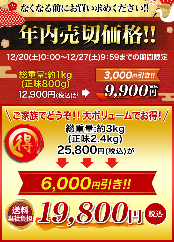 | 商品番号 | 【総重量:約1kg】12934 【総重量:約3kg(2kg+1kg)】12935 |