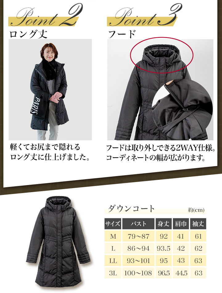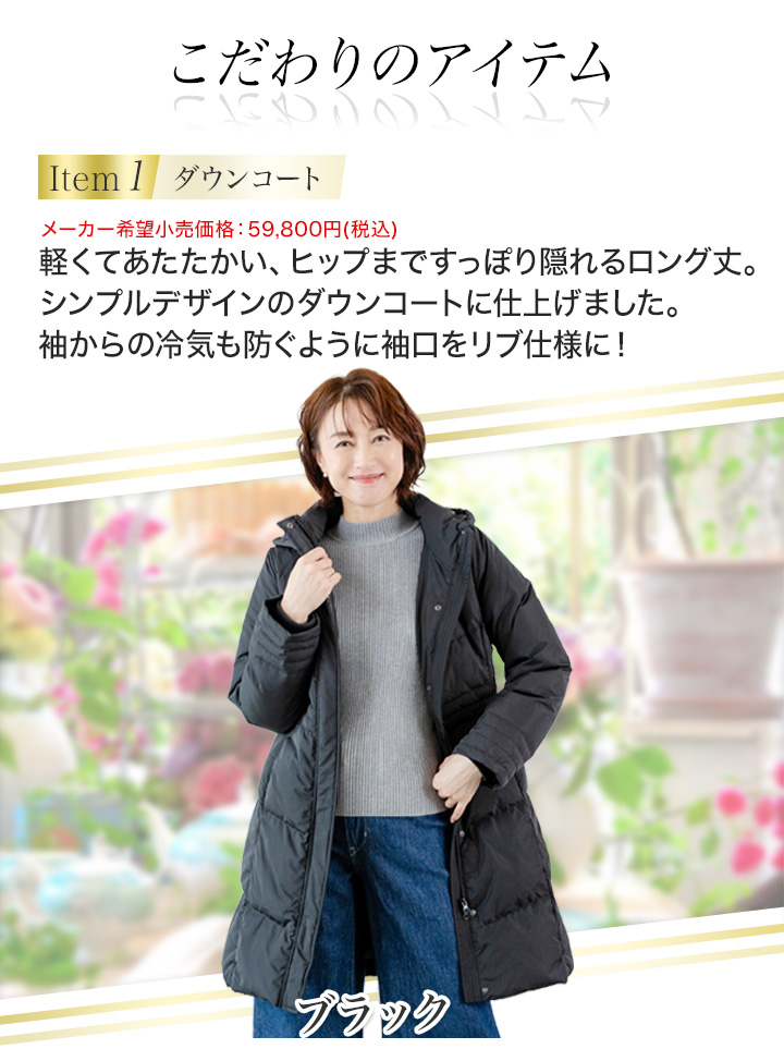 | 素材 | <ダウンコート> 【表地・裏地】ポリエステル100% 【中綿】 (本体) ダウン60%、フェザー40% (衿・フード・前立て) ポリエステル100% (袖口リブ) ポリエステル95%、ポリウレタン5% 【仕様】撥水加工、フード取り外し可能 <リブニットソー> 【生地】レーヨン50%、ナイロン25%、ポリエステル25% 【形状】ハイネック <マフラー> 【素材】ポリエステル100% 【サイズ(約)】幅13cm×長さ84cm <手袋> 【素材】 (手の甲) ポリエステル95%、アクリル5% (コーティング) ポリウレタン100% (手のひら) ポリエステル91%、ポリウレタン9% 【サイズ(約)】 幅9cm×長さ23cm (23-24cm、手囲い18-21cm) <ジャガードニットバッグ> 【素材】ポリエステル100% 【サイズ】縦37cm×横22cm |