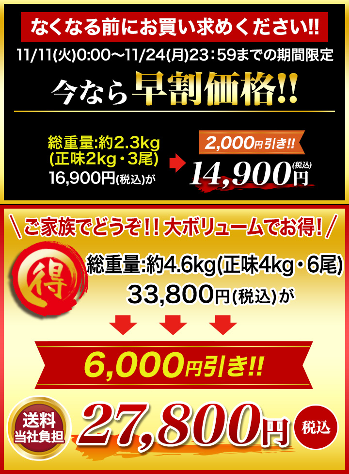 | 送料 | 総重量:約2.3kg 【全国(右記以外)】1,200円(税込) 【北海道・沖縄・離島】1,750円(税込) 総重量:約4.6kg 【全国(右記以外)】送料当社負担 【北海道・沖縄・離島】660円(税込) |
