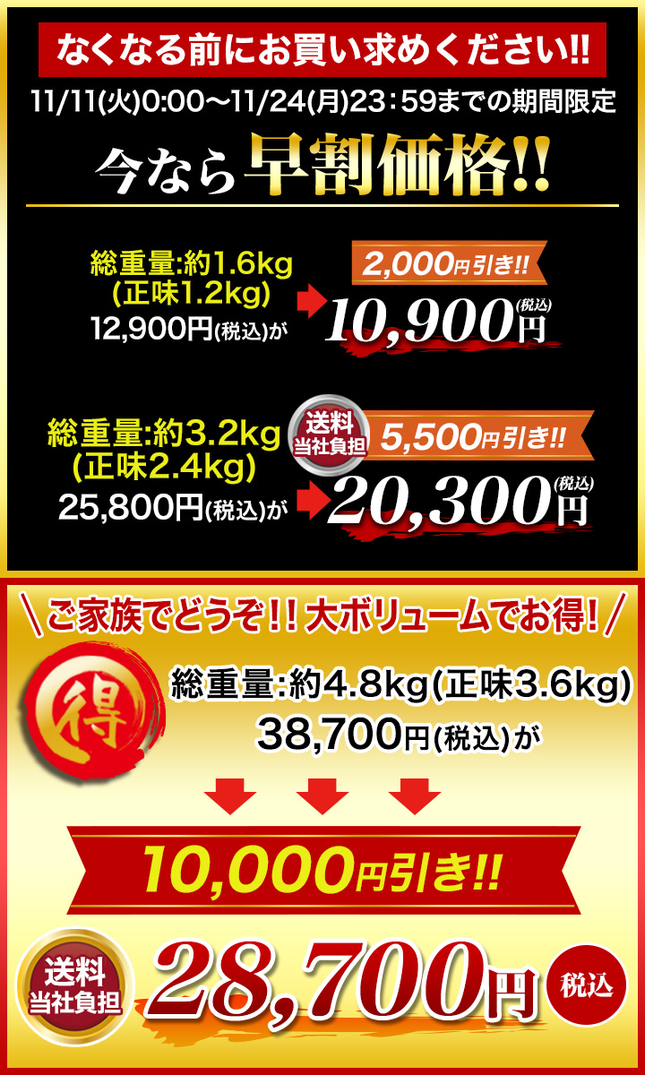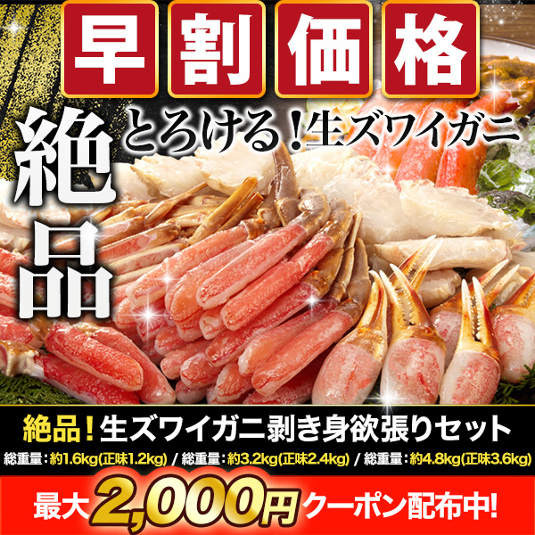 【早割価格】絶品!生ズワイガニ剥き身欲張りセット 総重量:約1.6kg(正味1.2kg)/総重量:約3.2kg(正味2.4kg)/総重量:約4.8kg(正味3.6kg)