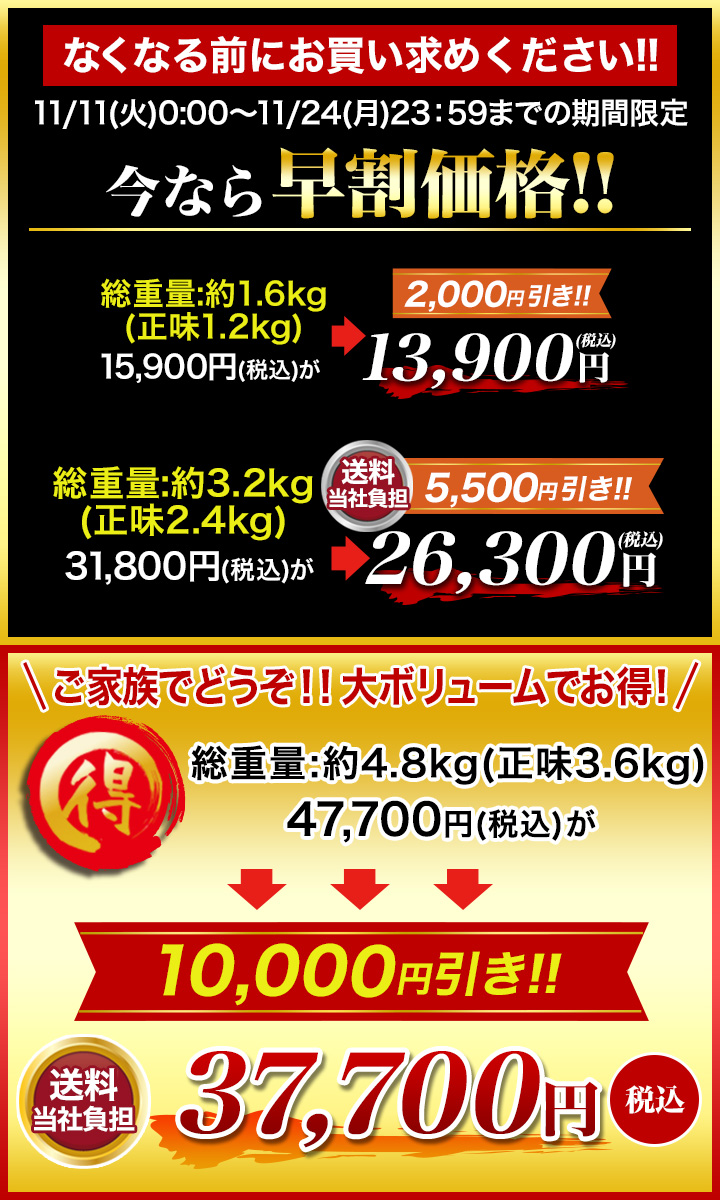 | 送料 | 総重量:約1.6kg 【全国(右記以外)】1,200円(税込) 【北海道・沖縄・離島】1,750円(税込) 総重量:約3.2kg/総重量:約4.8kg 【全国(右記以外)】送料当社負担 【北海道・沖縄・離島】660円(税込) |
