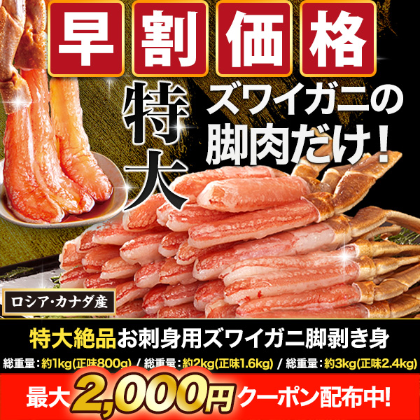 | 商品説明 | 特に大きい脚をセレクトしたズワイガニの脚剥き身をどっさりお届け! 高級料亭の味わいをご自宅で!プリップリのお刺身用の生ズワイガニ! ボイルとはひと味違うカニ刺しの魅力! 国際規格の品質管理手法「HACCP」認定工場で加工。 抜群の鮮度と加工技術で旨味と甘味が凝縮されている生ズワイガニの脚の剥き身です。 一番食べごたえのある脚肉だけの贅沢なセット! 南蛮なしでこの重量!可食部が多くてお得です! お刺身用ならではのとろける食感とカニ本来の甘さをご堪能下さい! |