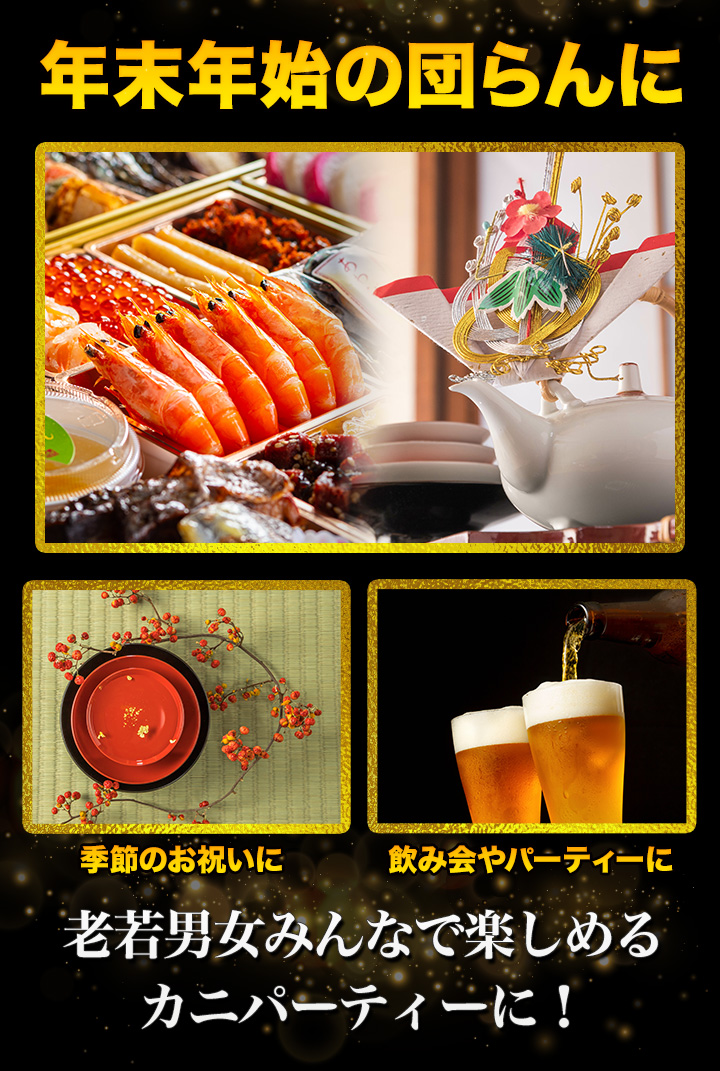 | 備考 | 総重量とは、グレーズ(氷)を含む重量です。 グレーズとは、空気に触れることによる乾燥や酸化を防ぐための氷の被膜です。 ( )内の正味とは、グレーズを除いたカニのみの重量です。 商品のラベルにはカニ正味の重量を記載しています。 |