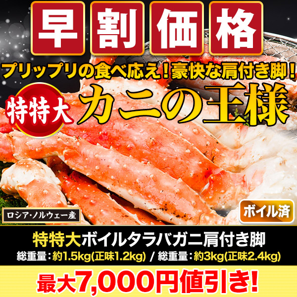 | 商品説明 | 思わず笑みがこぼれるほどの驚きの大きさ!特特大サイズのタラバガニ! 身入りパンパンの特特大ごんぶとの脚! タラバガニの魅力は何といっても濃厚な旨味とボリューム。 はちきれんばかりに身が詰まった極太の脚にガブリとかぶりつけば、 ジューシーな甘みが広がって食べ応え満点です。 漁獲量が激減しているタラバガニのこのサイズは貴重です。 ボイル済みなので、解凍するだけで食べられます。 焼きガニにしても美味しくお召し上がりいただけます。 ブルンブルンの肉厚と食べ応え満点のもっちり食感のカニの王様を、 口いっぱいに頬張る幸せを味わってください。 |