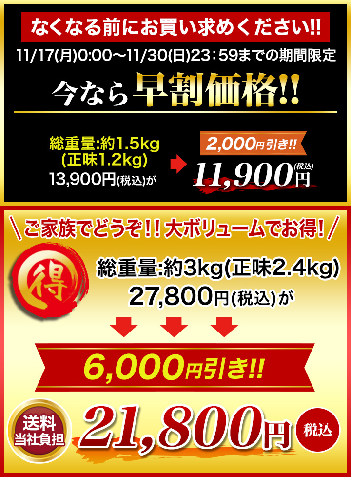 | 商品番号 | 【総重量:約1.5kg】13340 【総重量約:3kg】13341 |