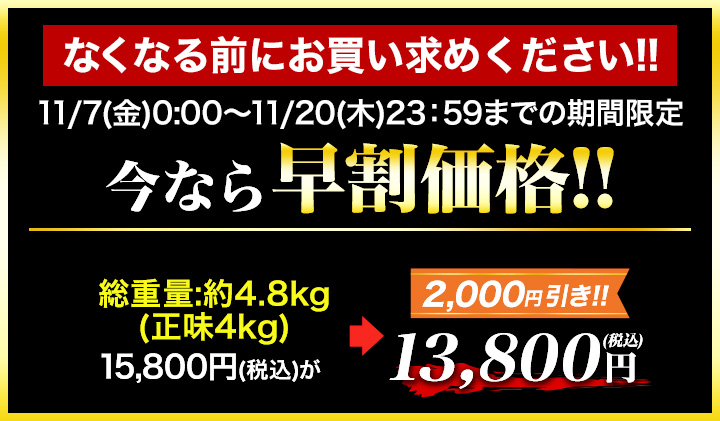 【早割価格】訳ありボイル紅ズワイガニ肩付脚 総重量:約4.8kg(正味4kg)