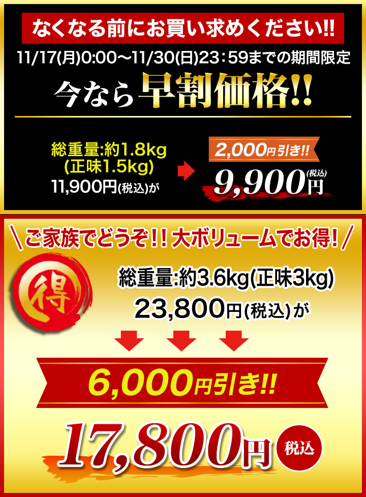 | 商品番号 | 【総重量:約1.8kg】13375 【総重量:約3.6kg】13376 |