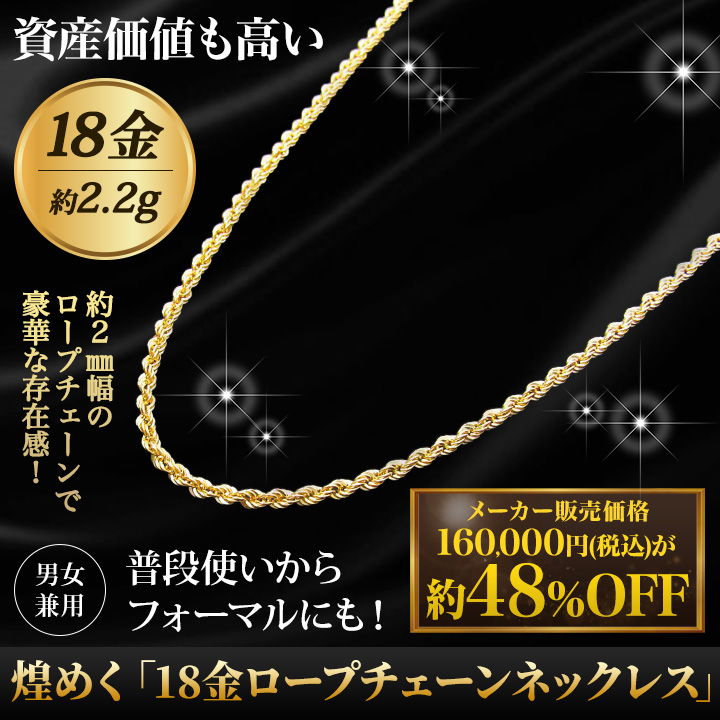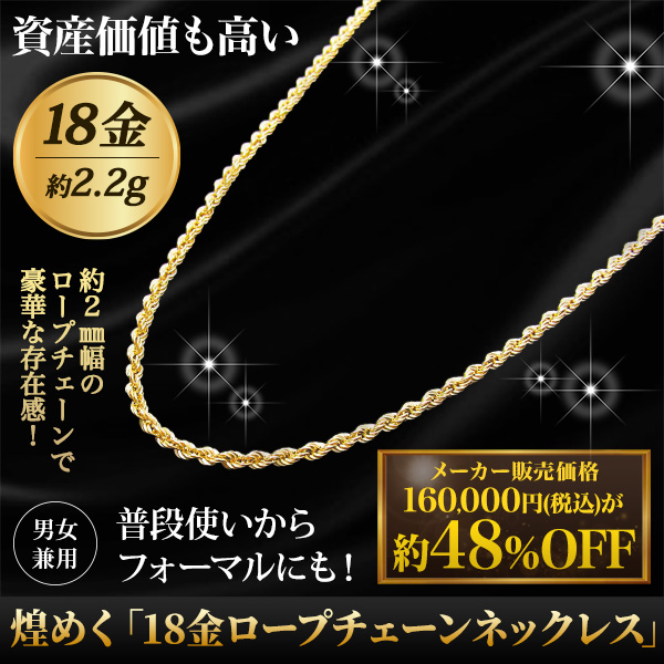 煌めく「18金ロープチェーンネックレス」