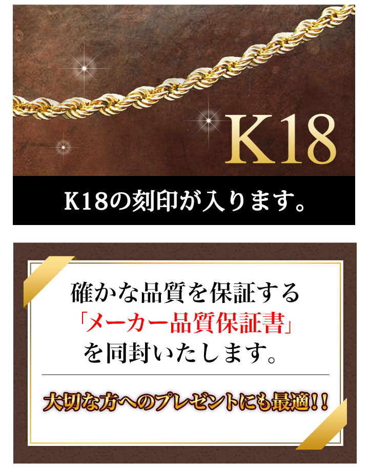 K18の刻印入り、メーカー品質保証書つきで安心!