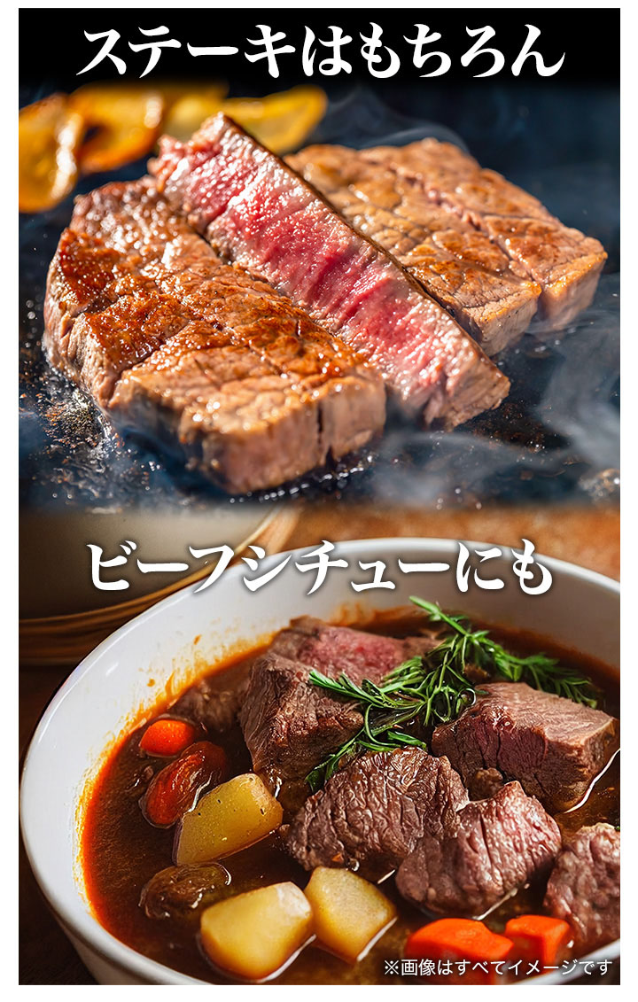 脂身が少なめの赤身肉を厳選!脂の多い肉が苦手な方に特におすすめです。鹿児島県産黒毛和牛のA4からA5までの未経産のウデとモモを使用し、A4以上を確約。ただの赤身ではなく、程よいサシがあるため食べやすさも抜群です。ヘルシーながらも満足度の高いステーキをご堪能ください。