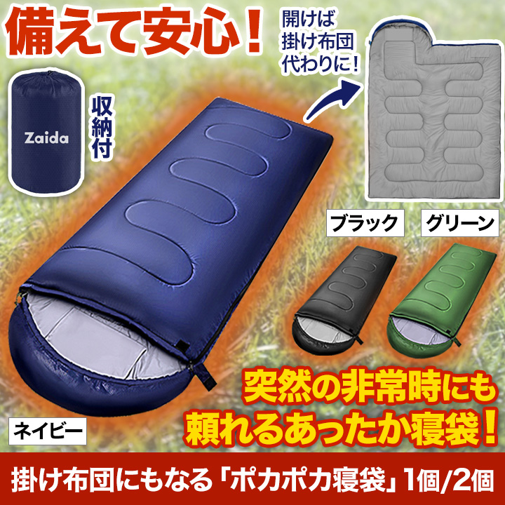 掛け布団にもなる「ポカポカ寝袋」1個/2個