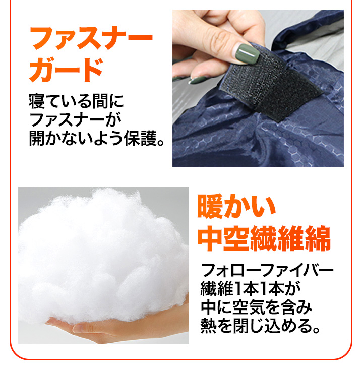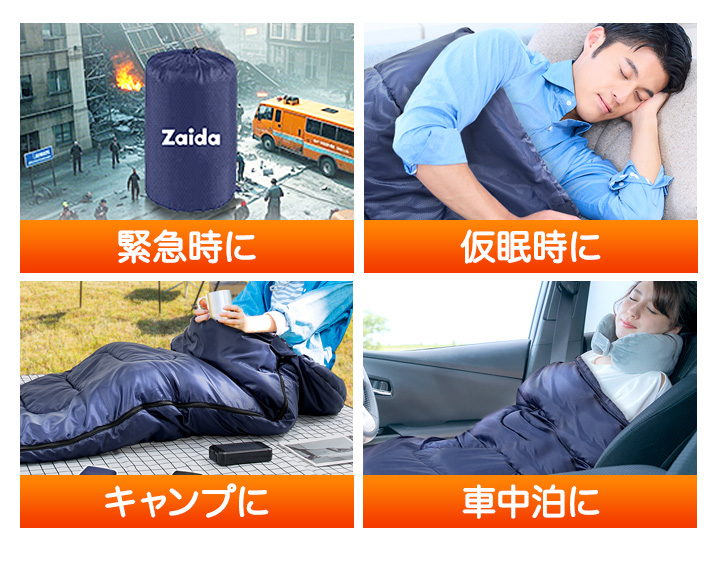 | 商品説明 | 備えて安心! 突然の非常時にも頼れるあったか寝袋! 緊急時はもちろん、仮眠時、キャンプや車中泊、急な来客にも! さらにファスナーを開けば掛け布団としても使えて、いろいろなシーンで役立ちます。 ドローコード、ファスナーガード、暖かい中空繊維綿と、保温性を高めるためのさまざまな工夫が施されていて、いつでもどこでも快適に眠れます。 コンパクトにおさまる収納袋付きです。 |