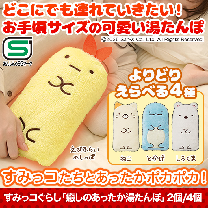 | 商品説明 | すみっコたちに癒される♪ やわらか&ふんわりあったか湯たんぽです。 お子さまからお年寄りまで、幅広い年代に愛される「すみっコ」たち。 お湯を入れればポカポカあったか!ふわふわカバーと可愛いキャラクターに癒されます。 人気ランキング上位のとかげ、ねこ、しろくま、えびふらいのしっぽからお好きなキャラクターをお選びいただけます。 |