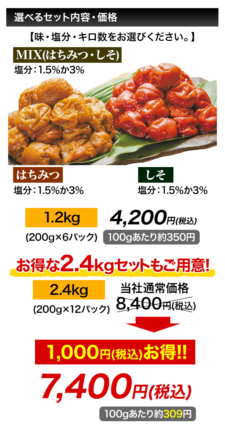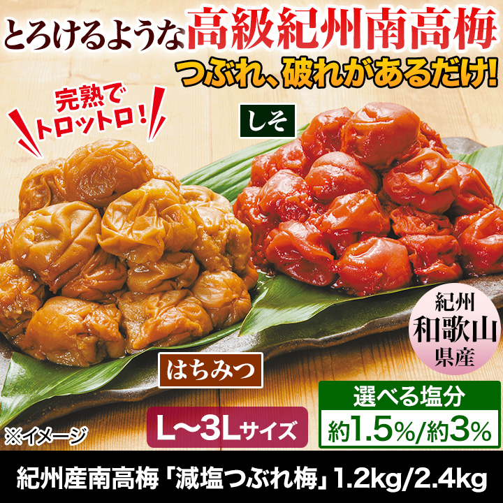紀州産南高梅「減塩つぶれ梅」 1.2kg/2.4kg しそ/はちみつ