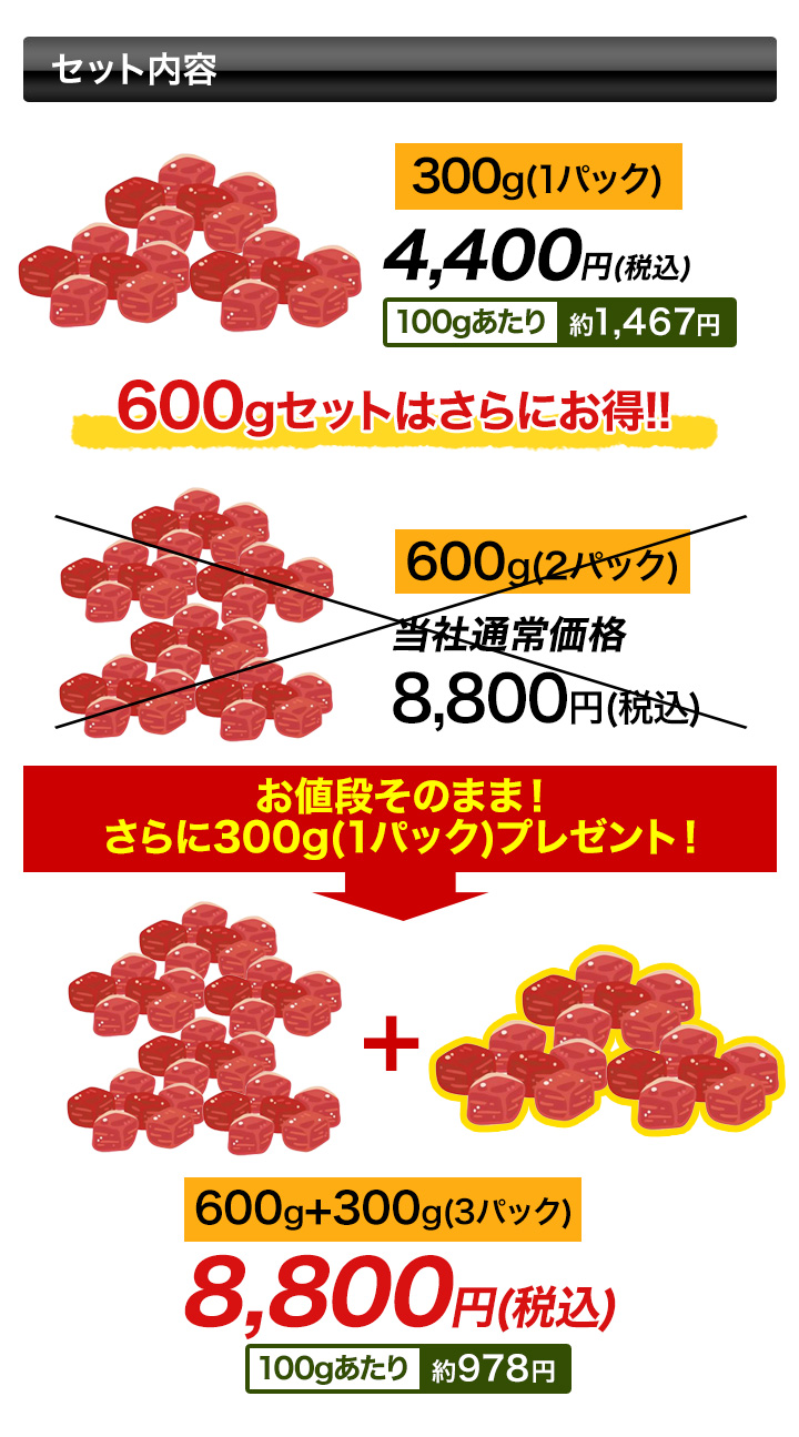 | セット内容 | 【300g】300g×1パック 【600g+300g】300g×3パック |