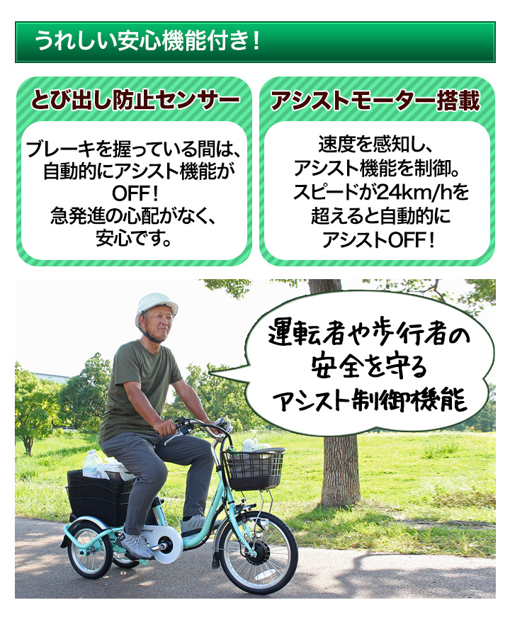 ブレーキを握っている間は、自動的にアシスト機能がOFF!とび出し防止センサーで急発進の心配がなく安心です。