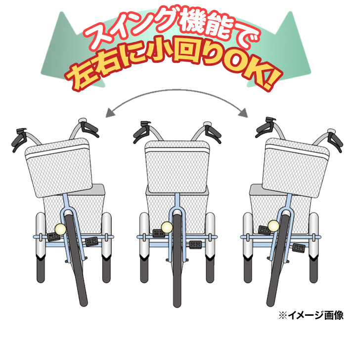 小さく曲がれる、スイング機能付き。左右にスイングするからキビキビ曲がれます。