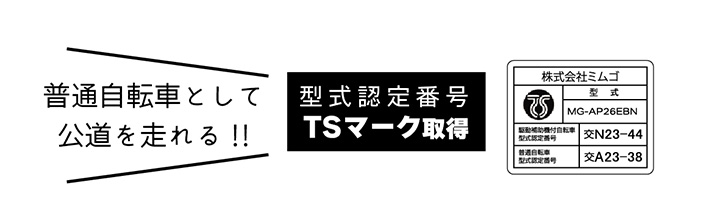 TSマーク(型式認定番号)が表示された電動アシスト自転車は、国家公安委員会より自転車として登録されている製品です。