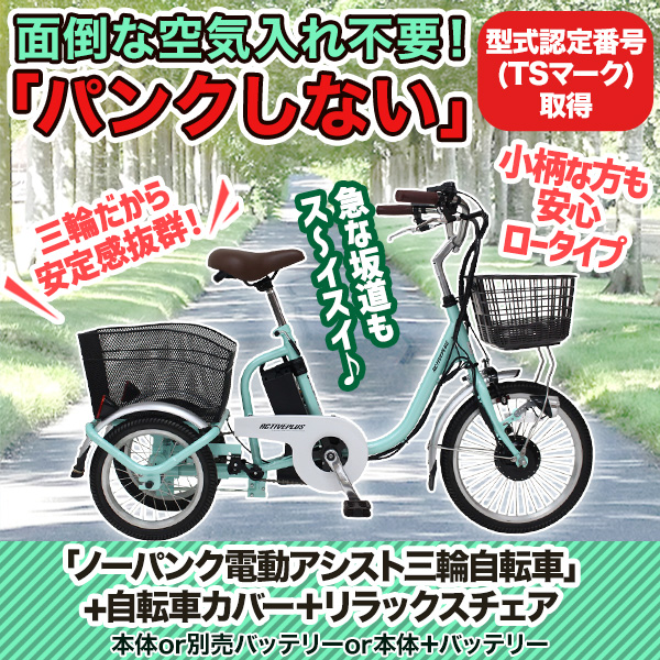 「ノーパンク電動アシスト三輪自転車」+自転車カバー+リラックスチェア