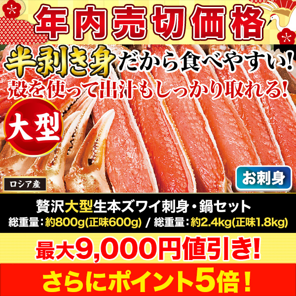 | 商品説明 | お刺身用生ズワイガニの美味しいところを食べつくす! 5種類の大満足セット! 手持ち部分以外の面倒な殻は全てキレイに取り除いています。 お刺身用ならではのとろける食感とカニ本来の甘さが味わえます。 ポン酢・カニ酢などにつけてそのまま召し上がっても良し、カニしゃぶや雑炊にもオールマイティーに使えます! 解凍してそのままお刺身として食べる事ができます。 ボイルのカニでは味わえないトロンとした甘いカニ肉を存分にお楽しみください! |