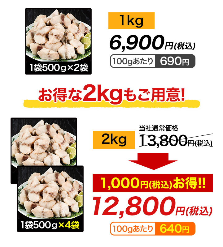 | 内容量 | 1袋500g(約13~23切)×2袋または4袋 |