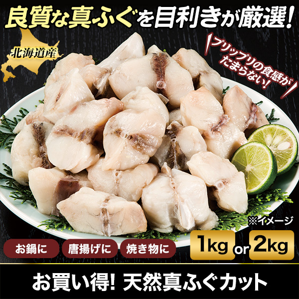 | 商品説明 | 安心の国産!北海道産「真ふぐ」は身だけでなく骨から出る旨味も楽しめるため、鍋の出汁としても最適! 2kgならふぐ鍋約10人前(1人あたり200gで計算)。 上品な甘みとプリプリした食感が特徴で、唐揚げ、お鍋、そのまま焼いても。いろんな料理に使える真ふぐのカットを大容量大特価でご提供いたします。 |