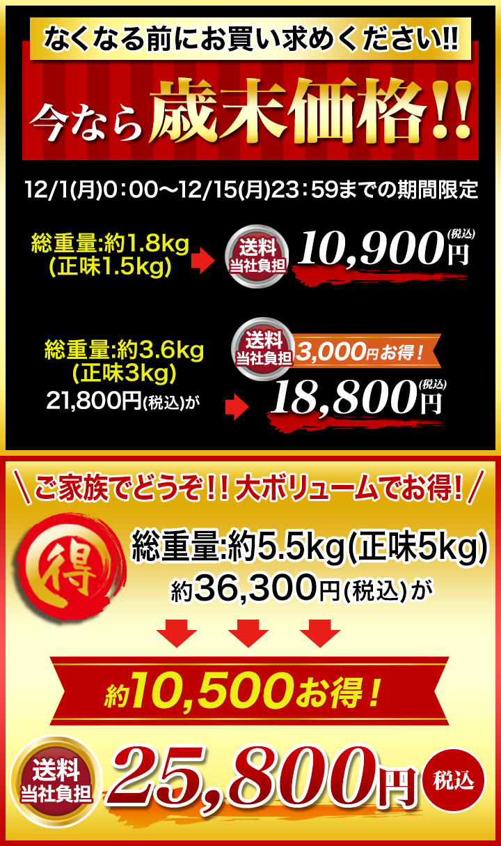 | 商品番号 | 【総重量:約1.8kg】13616 【総重量:約3.6kg】13617 【総重量:約5.5kg】13618 |