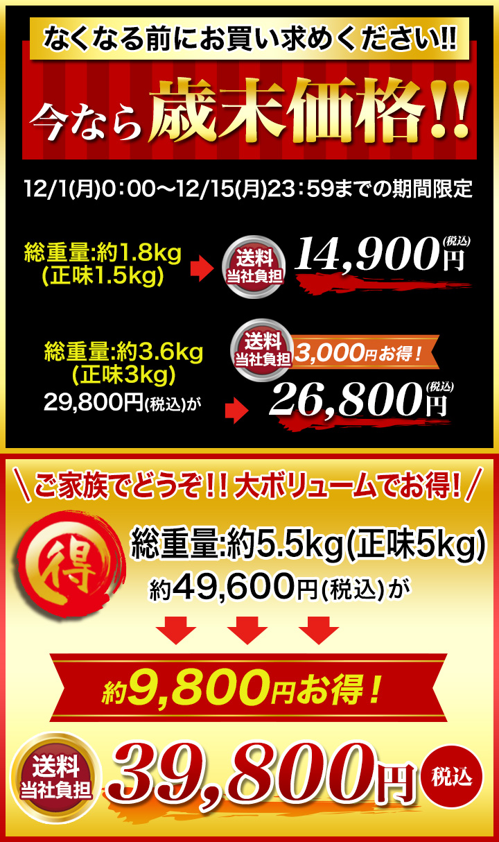 | 商品番号 | 【総重量:約1.8kg】13622 【総重量:約3.6kg】13623 【総重量:約5.5kg】13624 |