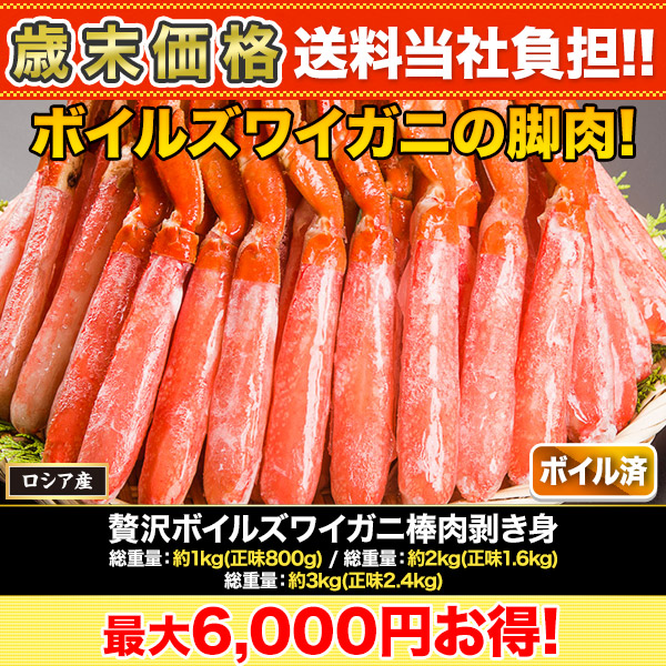 【歳末価格+送料当社負担】贅沢ボイルズワイガニ棒肉剥き身 総重量:約1kg