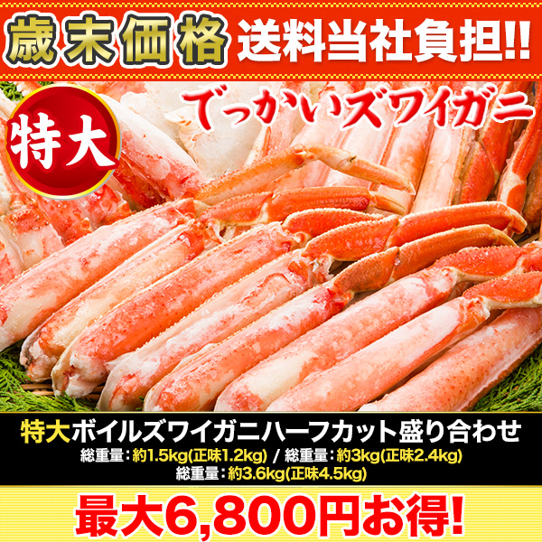 【歳末価格+送料当社負担】特大ボイルズワイガニハーフカット盛合わせ