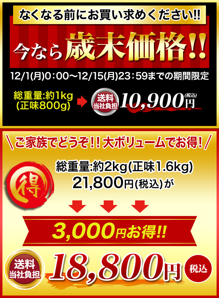 | 商品番号 | 【総重量:約1kg】13698 【総重量:約2kg】13699 |
