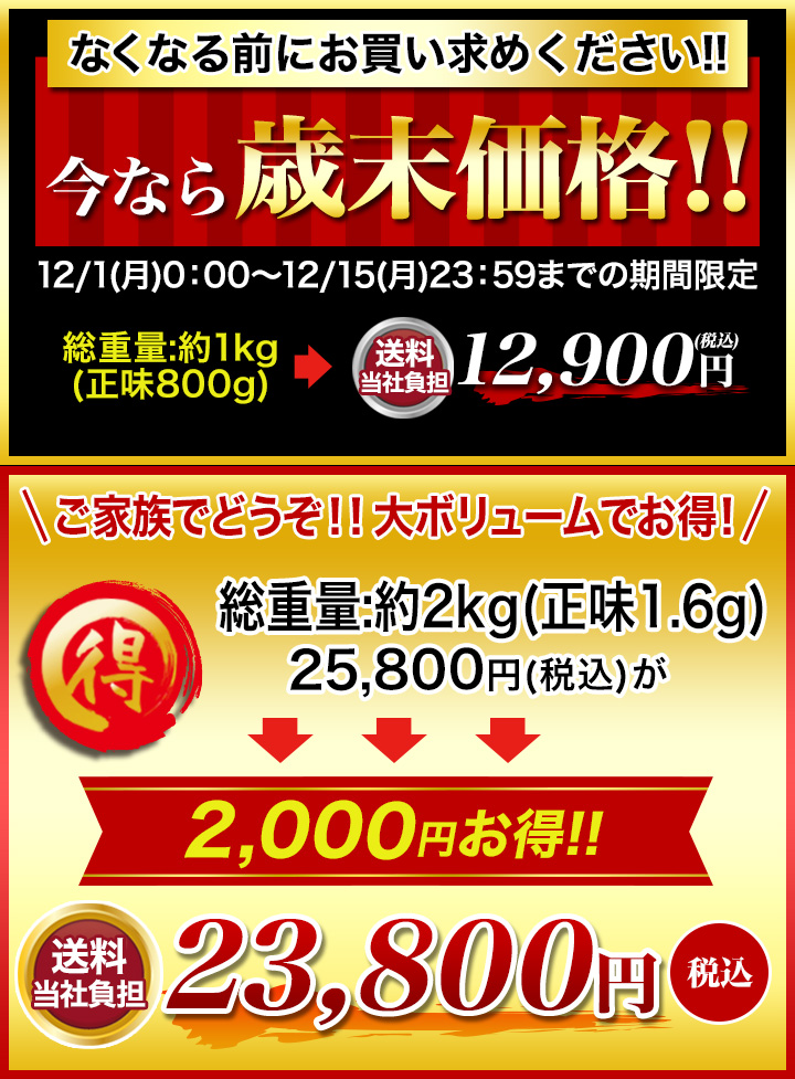 | 商品番号 | 【総重量:約1kg】13709 【総重量:約2kg】13710 |
