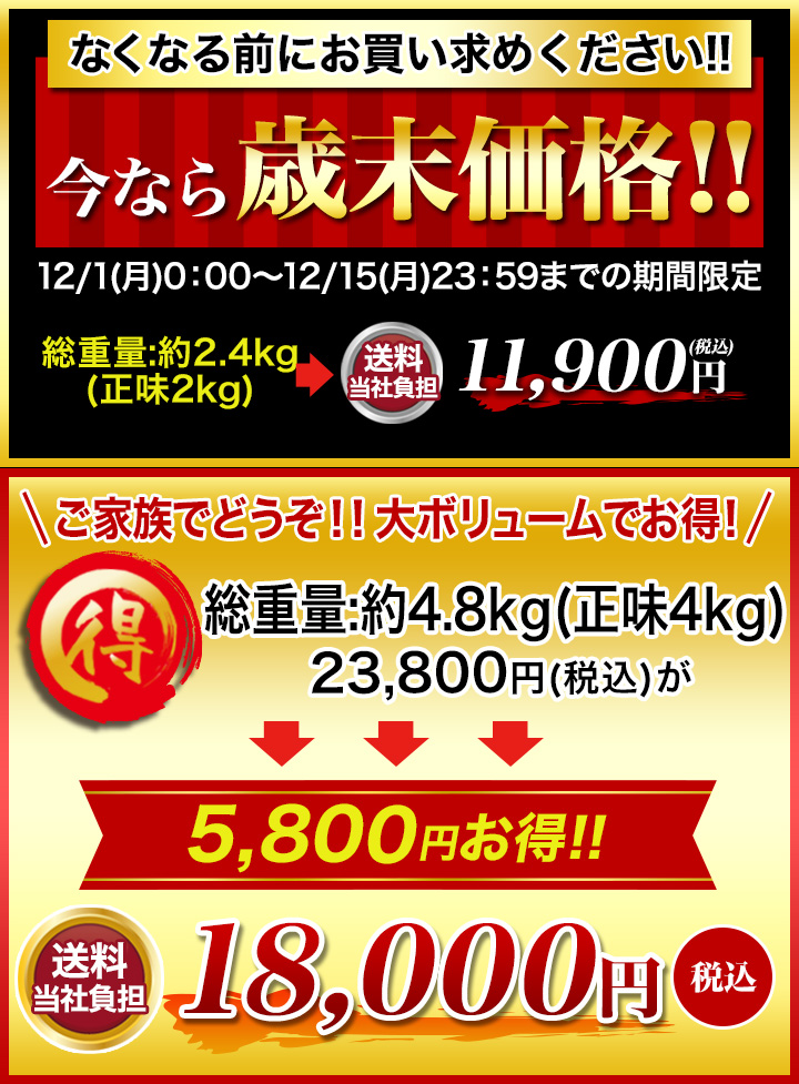 | 商品番号 | 【総重量:約2.4kg】13733 【総重量:約4.8kg】13744 |
