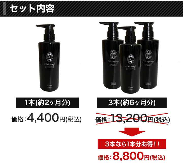 | セット内容 | 1本or3(2+1)本 【内容量】500ml/1本 ※1回2プッシュの使用で約85回分 |