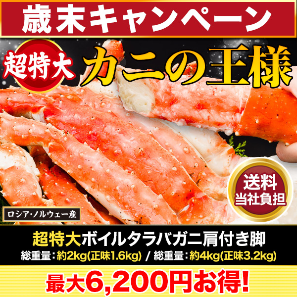 | 商品説明 | 思わず笑みがこぼれるほどの驚きの大きさ!超特大サイズのタラバガニ! 身入りパンパンの超特大ごんぶとの脚! タラバガニの魅力は何といっても濃厚な旨味とボリューム。 はちきれんばかりに身が詰まった極太の脚にガブリとかぶりつけば、 ジューシーな甘みが広がって食べ応え満点です。 漁獲量が激減しているタラバガニのこのサイズは貴重です。 ボイル済みなので、解凍するだけで食べられます。 焼きガニにしても美味しくお召し上がりいただけます。 ブルンブルンの肉厚と食べ応え満点のもっちり食感のカニの王様を、 口いっぱいに頬張る幸せを味わってください。 |