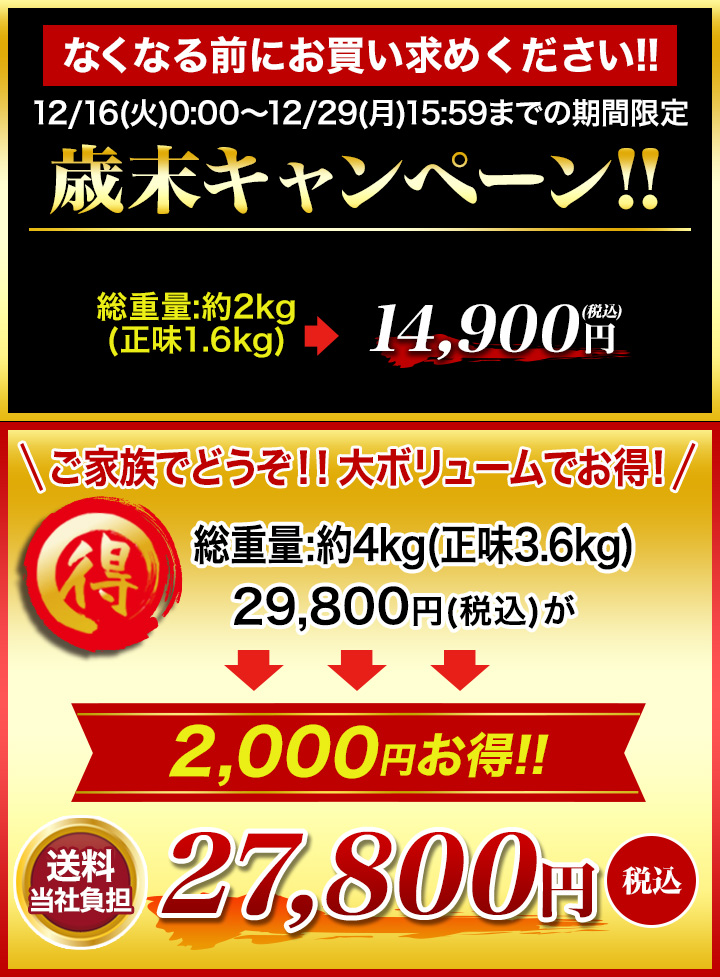 | 商品番号 | 【総重量:約2kg】13910 【総重量:約4kg】13911 |