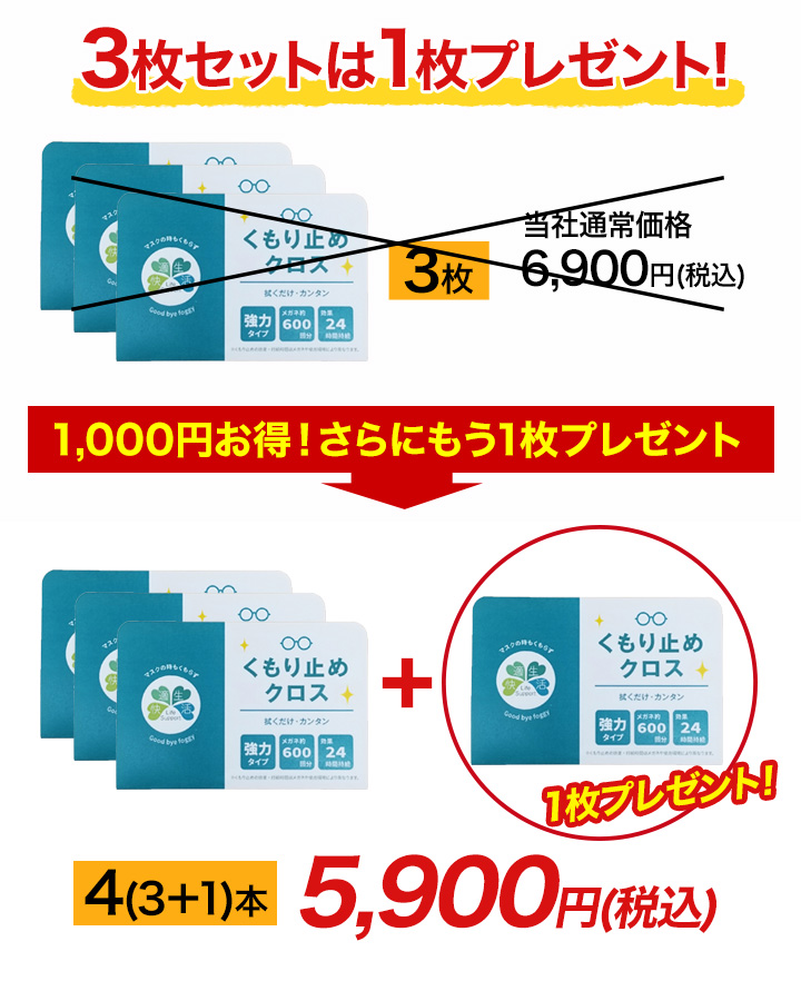 強力!!眼鏡曇り止めクロス 1枚/4(3+1)枚