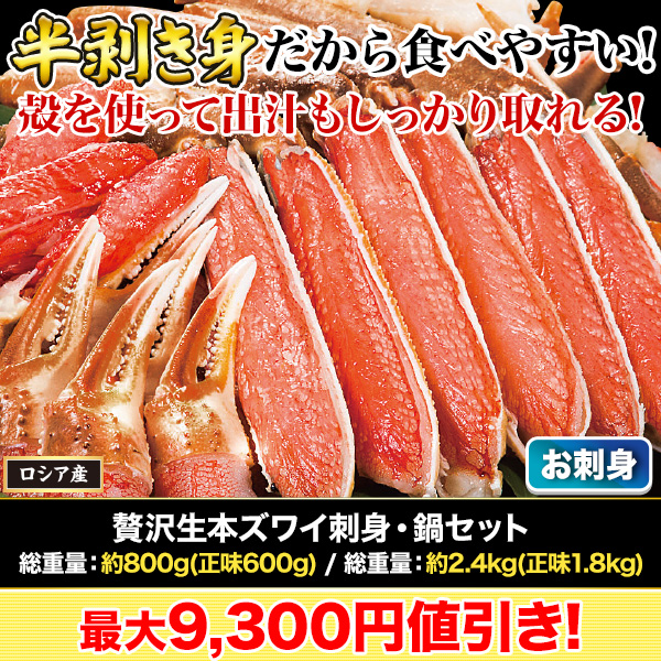 【LINE特別価格】贅沢生本ズワイ刺身・鍋セット