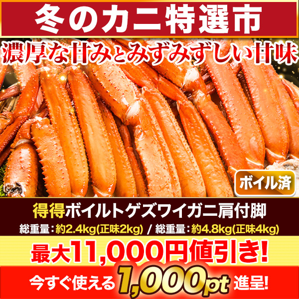 | 商品説明 | 「見た目も美味しさもまるでズワイガニ」でおなじみのトゲズワイガニ! トゲズワイガニは、フワっと繊細で柔らかな食感の本ズワイの濃厚な旨みと、 紅ズワイの瑞々しい甘さが合わさったような、良いとこどりの美味しさ! 食べやすくて、身の部分がたっぷりの肩付き脚でお届けします! 解凍して、お好みで塩抜きをしたら、殻からするするっと長い脚の身を 取り出して、思いっきりかぶりついてください。 お口いっぱいにじゅわじゅわと広がるカニの甘みを堪能してください。 そのまま何もつけなくても美味しいですが、 カニ酢やわさび醤油、ポン酢、マヨネーズなど、 いろいろ用意して味の変化を楽しみながらお召し上がりください。 |