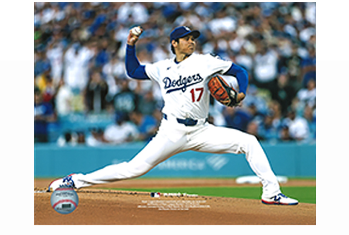 日本で放ったシーズン第1号ホームランの瞬間と「投手大谷」復帰のマウンドの印象的なシーンを切り取った木製フォトフレームに、驚異的な記録をプリントしたボールを収めた究極のメモリアルセット