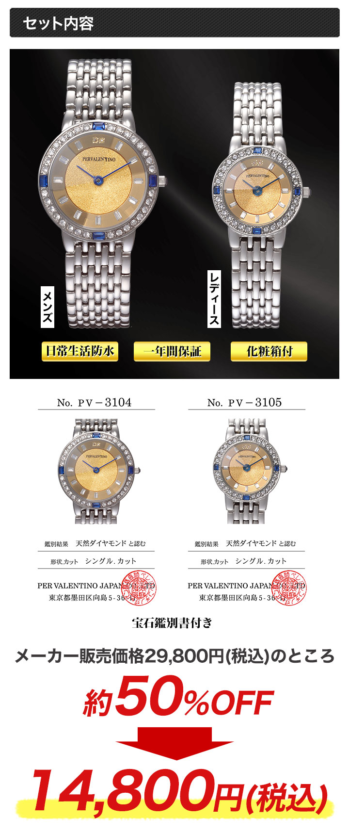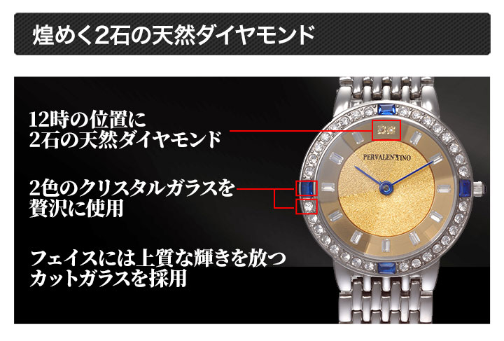ペレバレンチノ「天然石ダイヤ宝飾時計」