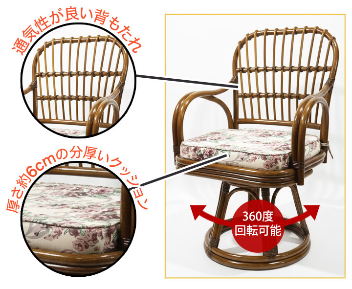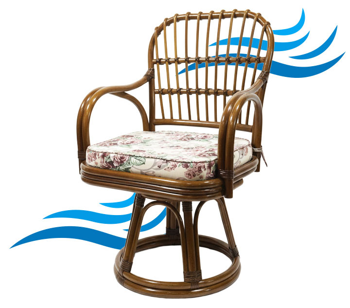 | 材質 | 【本体部分】構造部材:籐・合板/鋼鉄(回転盤)、表面加工:ラッカー塗装、張地:ポリエステル、詰め物:ウレタンフォーム |